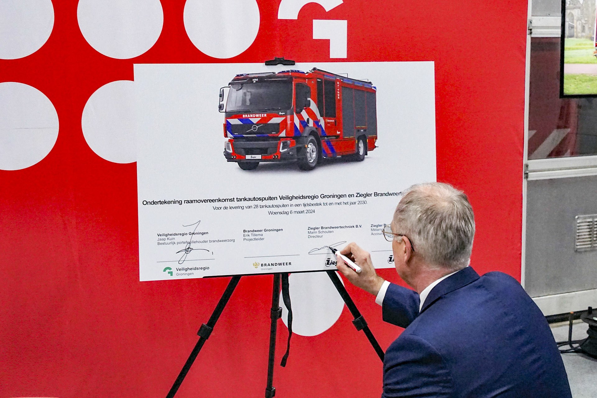 Unterzeichnet wurde der Vertrag von Jaap Kuin (Verwaltungsbeauftragter für Feuerwehren der Sicherheitsregion Groningen), Erik Tillema (Projektleiter der Feuerwehr Groningen), Marin Schouten (Director Ziegler Brandweertechniek B.V.) und Mélarno Kraan (Accountmanager Ziegler Brandweertechniek B.V.).