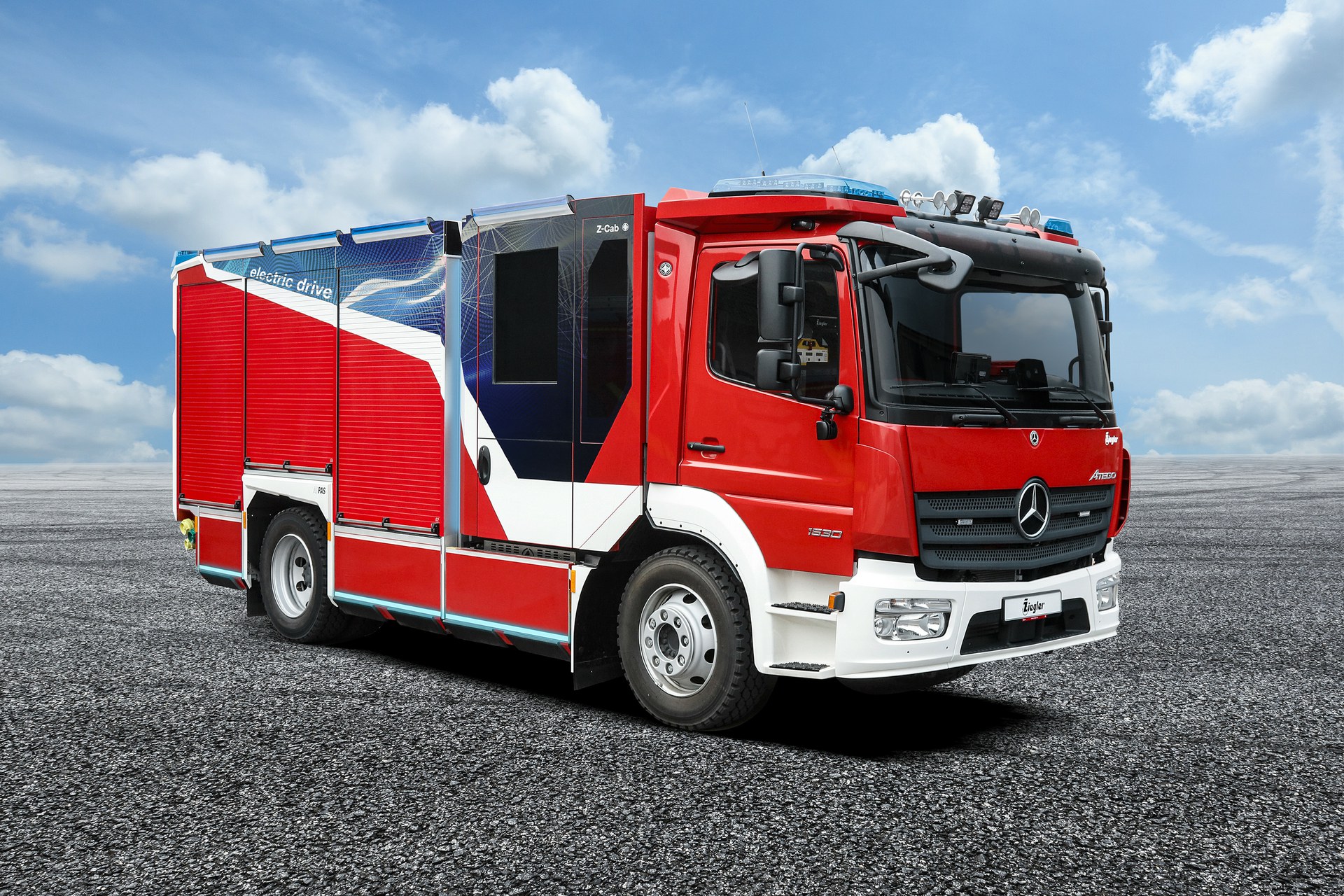 Um diesen Anforderungen gerecht zu werden, setzt ZIEGLER auf eine pragmatische Vorgehensweise und beschäftigt sich schon frühzeitig mit Energieträgern, deren Potentiale hoch sind. Deren Einsatz scheint bei Feuerwehren jedoch noch in weiter Ferne zu liegen. Eine Lösung könnte Wasserstoff sein – ein entsprechender Trend zeichnet sich im Nutzfahrzeugbereich ab. Ein lokal vollständig emissionsfreier Betrieb, kurze Tankzeiten und die Deckung des Leistungsbedarfs scheinen damit in greifbare Nähe zu rücken.