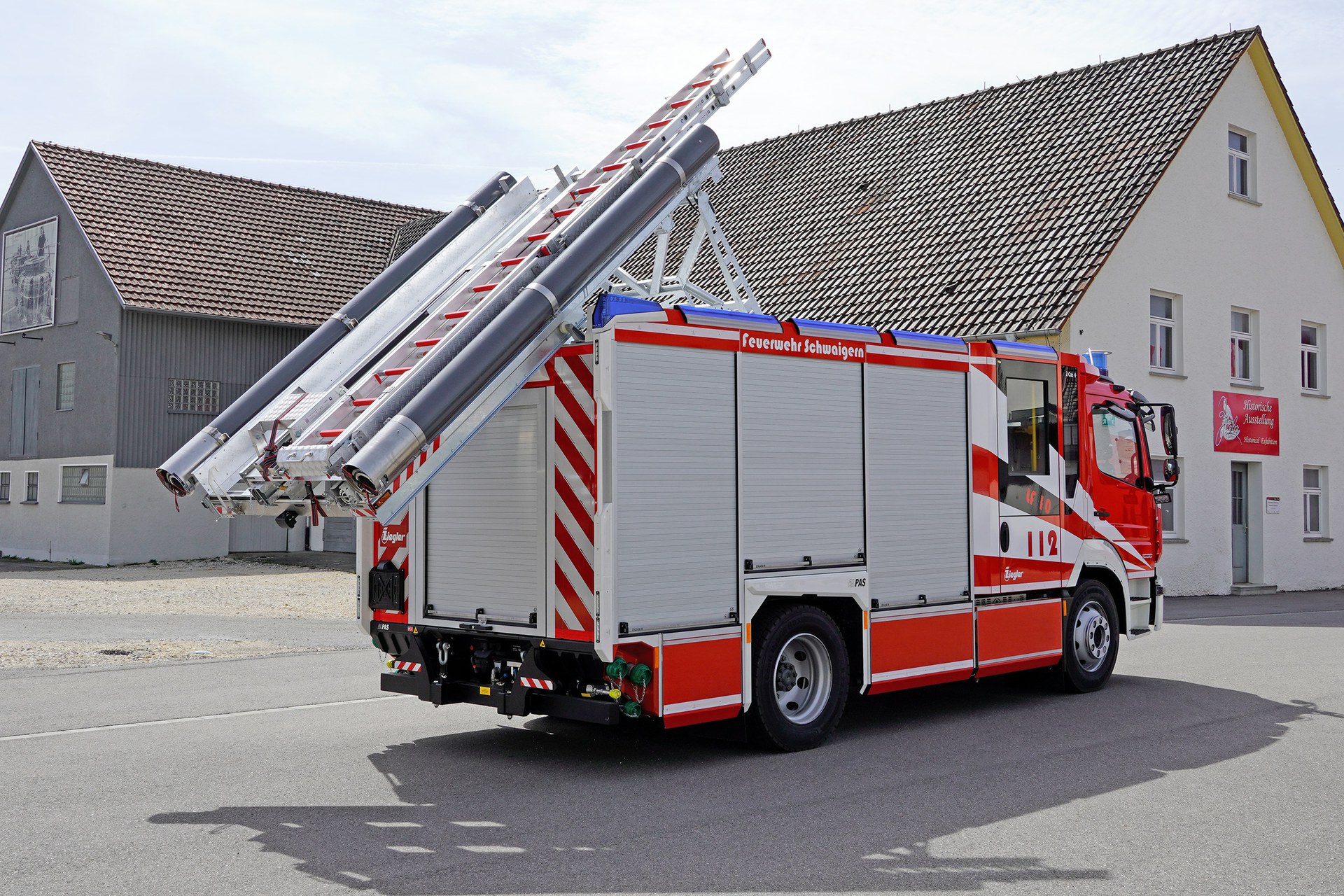 Die Abteilungen Massenbach und Stetten der Feuerwehr Schwaigern dürfen sich über zwei neue Löschfahrzeuge (LF 10) von ZIEGLER freuen. Die beiden baugleichen Fahrzeuge sind neben den typischen ZIEGLER spezifischen Merkmalen auch mit einer hydraulisch absenkbaren Entnahmehilfe auf dem Dach ausgestattet.