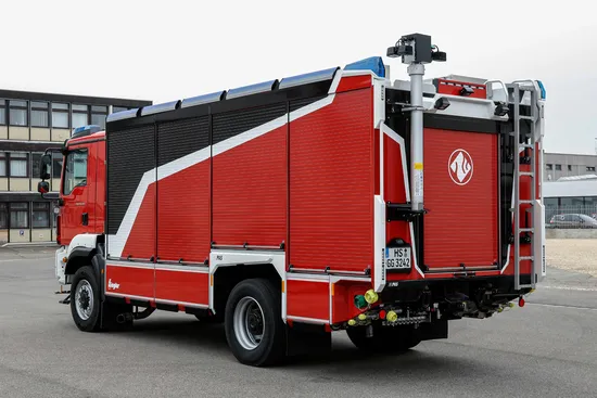 The vehicle also has a 6,000 liter water tank, a 500 + 200 liter foam tank, an Alco APF 3-C electric roof turret with lift and operation via Z-Control as well as a ZIEGLER ZW 800 electric bumper turret, also operated via Z-Control and has a total weight of less than 18 tons.