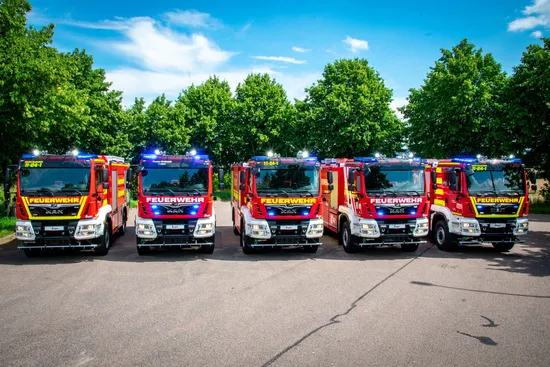 The five structurally identical vehicles were built at the ZIEGLER plant in Zagreb, Croatia and completed and handed over by ZIEGLER Feuerwehrgerätetechnik in Mühlau. From the outside, the vehicles, each with 5,500 liters of water and 500 liters of foam on board, differ only in their design. This is only the same with the two vehicles of Frohburg, otherwise each municipality has chosen a different design of the lettering and color applications.